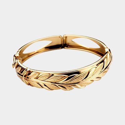 It presents a wrist-hugging oval of gold, punctuated with functional screws.